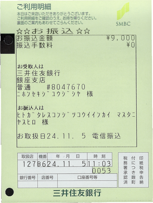 本家レスコン実行委員会の委託を受けて、当日会場で「レスキューホイッスル」(1個200円)を販売したところ、皆様に45個お買い上げいただきました。売上金9,000円は全て日本赤十字社の東日本大震災義援金の口座へ振り込みました。