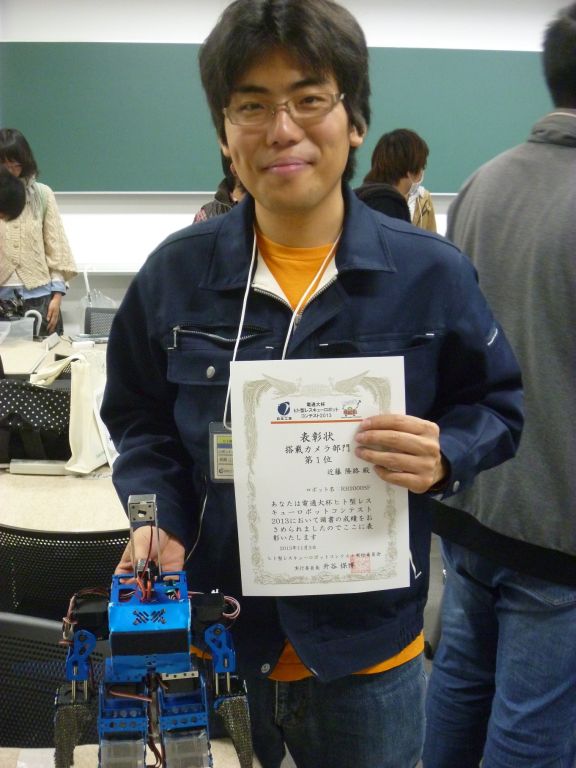 表彰式の講評で、審査委員長である愛知工業大学の奥川先生は「このコンテストは、なぜ車両型や変形ロボットではなく、ヒト型ロボットでレスキューをするのか意味をもっと考えてほしい。ヒト型ロボットでもっと様々な手法を考えて競技中にアピールしてほしい。」と次回のヒト型レスコンに対する期待をコメントした。
