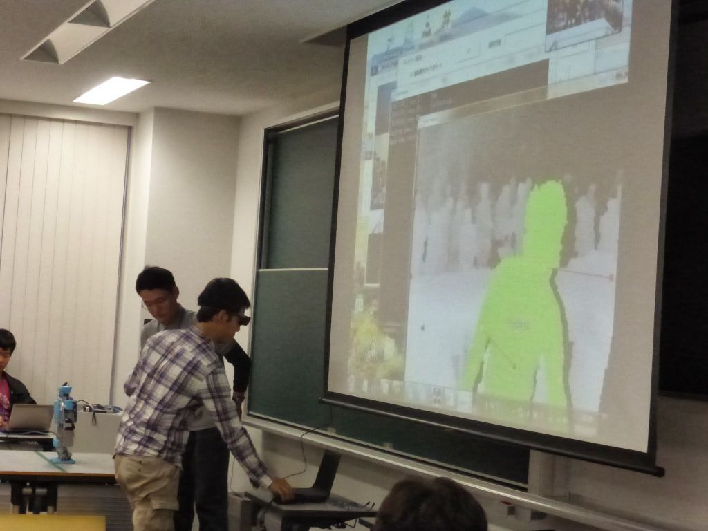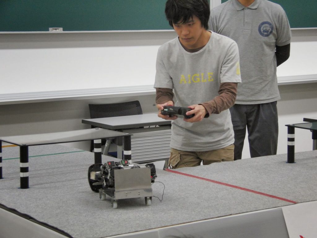 今回、技術賞を受賞した今川氏は、操作系を改良しファーストミッションからマイクロソフトの「Kinect」(人間の体のポーズを読み取る装置)を用いて、自分の動きをロボットに伝えるマスタースレーブ方式によりヒト型ロボットの両腕を操縦した。さらに、通常のゲームコントローラでは、「Kinect」と併用しにくいので、任天堂の「wiiリモコン」と「拡張コントローラヌンチャク」を用いてロボットに細かい命令を送れるようにした(画像31、画像32、画像33)。この高い技術とそれを競技に活かしたことが評価され受賞となった。