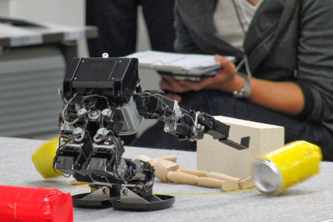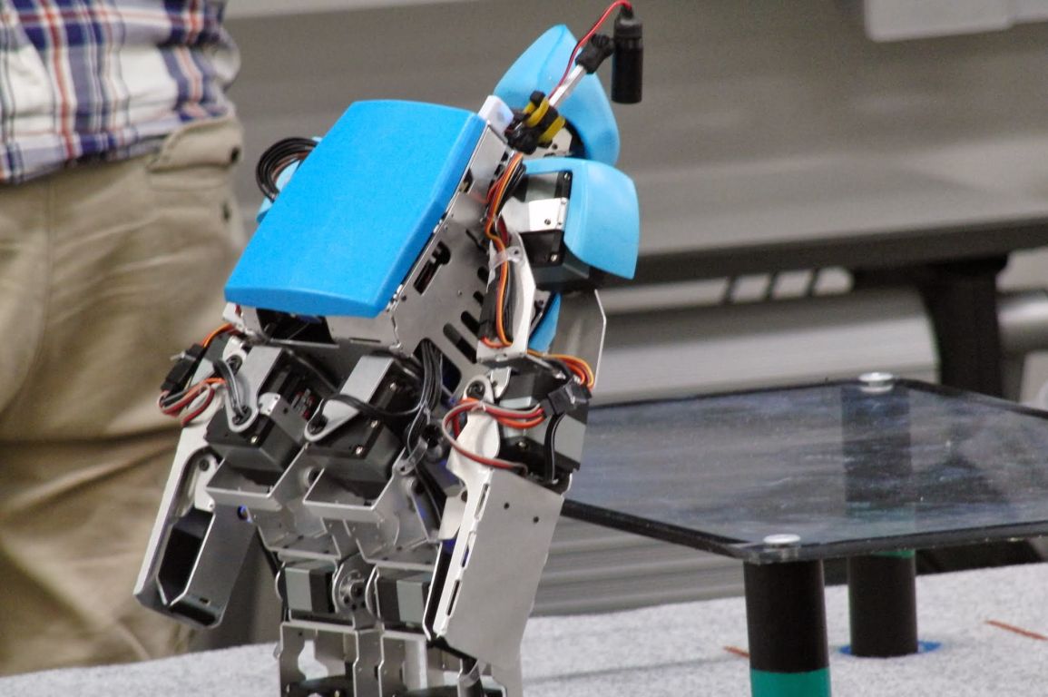 2013年11月3日に大阪電気通信大学駅前キャンパスで「電通大杯 ヒト型レスキューロボットコンテスト 2013」(以下、ヒト型レスコン)が開催された。ヒト型ロボットによる災害救助をテーマにしたロボットコンテストである。今年で5回目の開催となり、レスキューを行うために様々な工夫を凝らしたヒト型ロボット13体がエントリし、実際には10体が参加した(画像1)。今年から2部門制となり、搭載カメラ部門と目視部門の部門ごとの表彰と総合ポイントで決まる電通大杯が設けられた。搭載カメラ部門の第1位はzeno氏の操縦するロボット「RB2000SF」(画像2)、目視部門の第1位は、近藤氏の操作するロボット「大電通コマドリー改」となった(画像3)。また、近藤氏の「大電通コマドリー改」には電通大杯も贈られた。会場来られた観客には小さな子供連れの家族も多く、ヒト型ロボットが行うレスキュー活動に対して声援と拍手を送っていた。